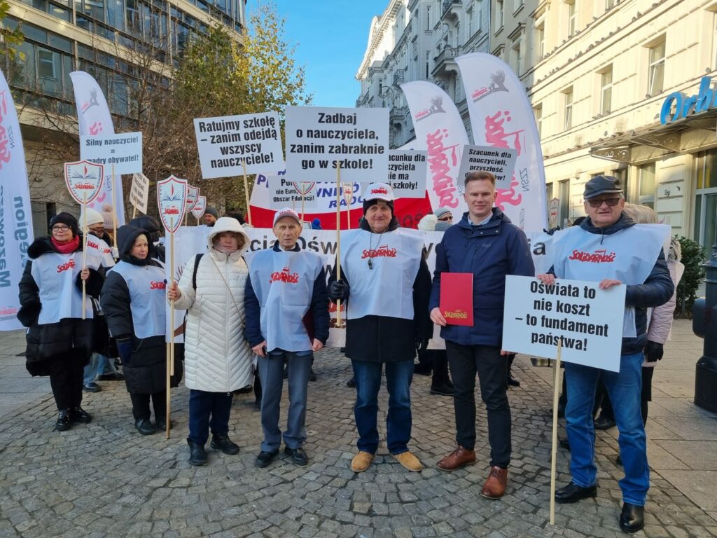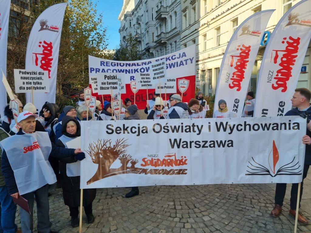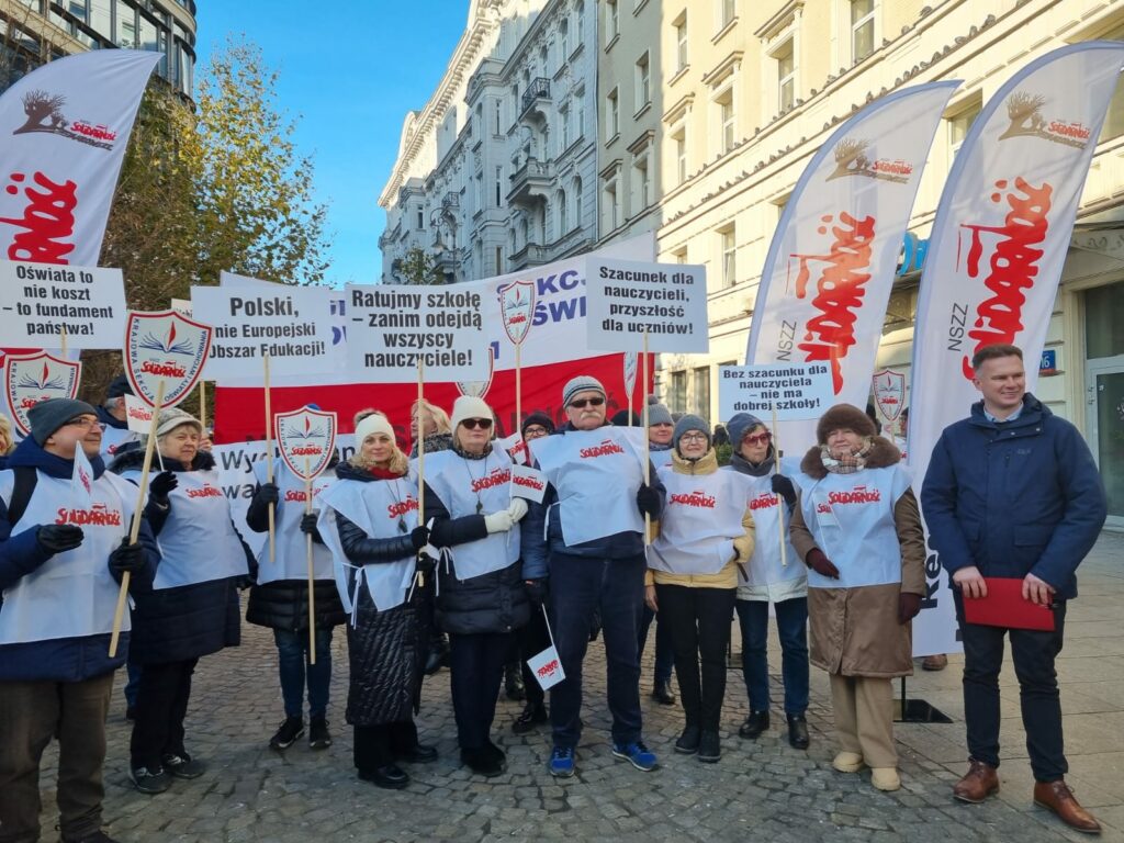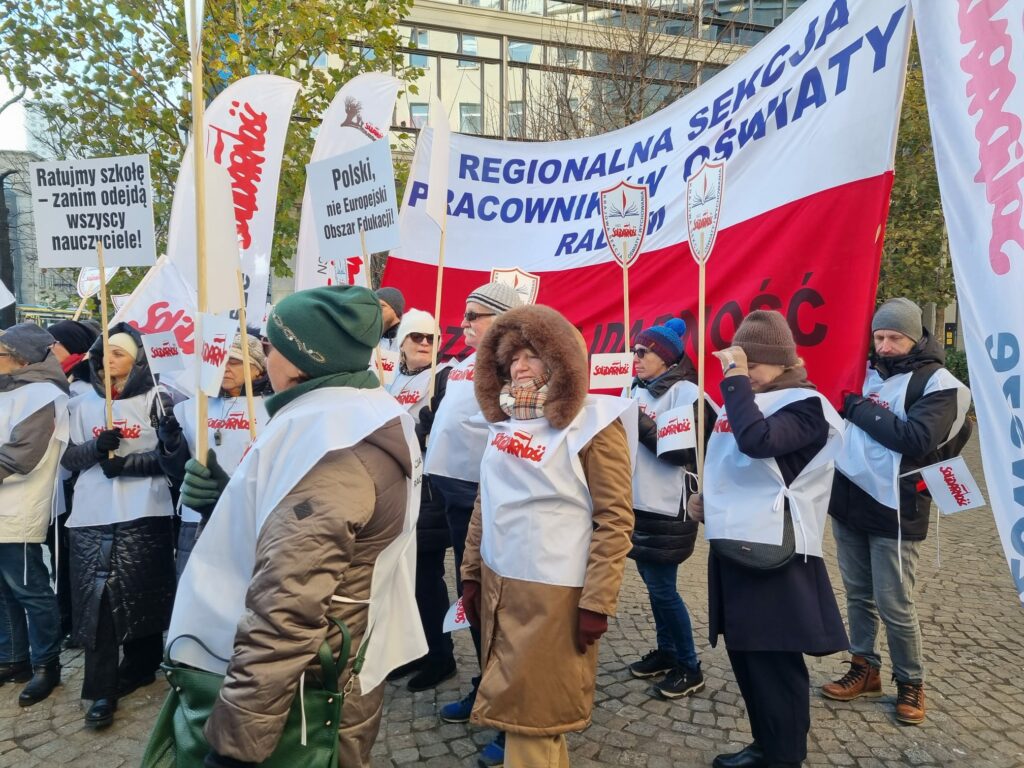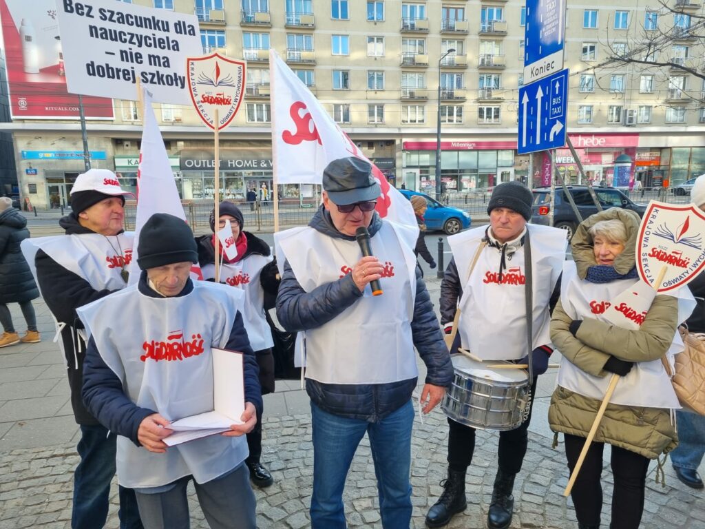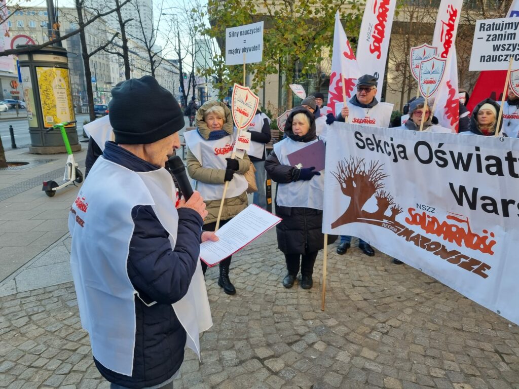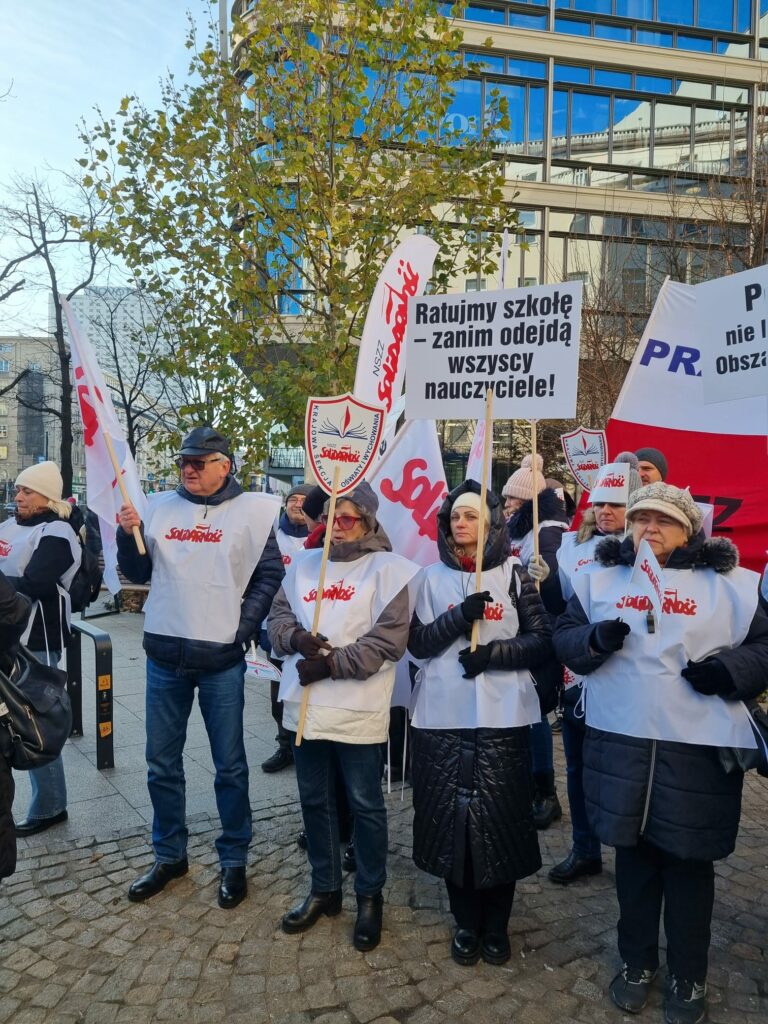 Pikieta pod Urzedem Mazowieckiego Kuratora Oswiaty w Warszawie 28 listopada 2025 roku Magdalena Makarska 7 grudnia, 2025 Aktualności Nawigacja wpisu Poprzedni Poprzedni wpis: KSOiW o zmianach w Karcie Nauczyciela: „Pośpiech, chaos i ryzyko nadużyć”Następny Następny wpis: Apel KSNiO do Prezydenta RP ws. nowelizacji ustawy Prawo oświatowe